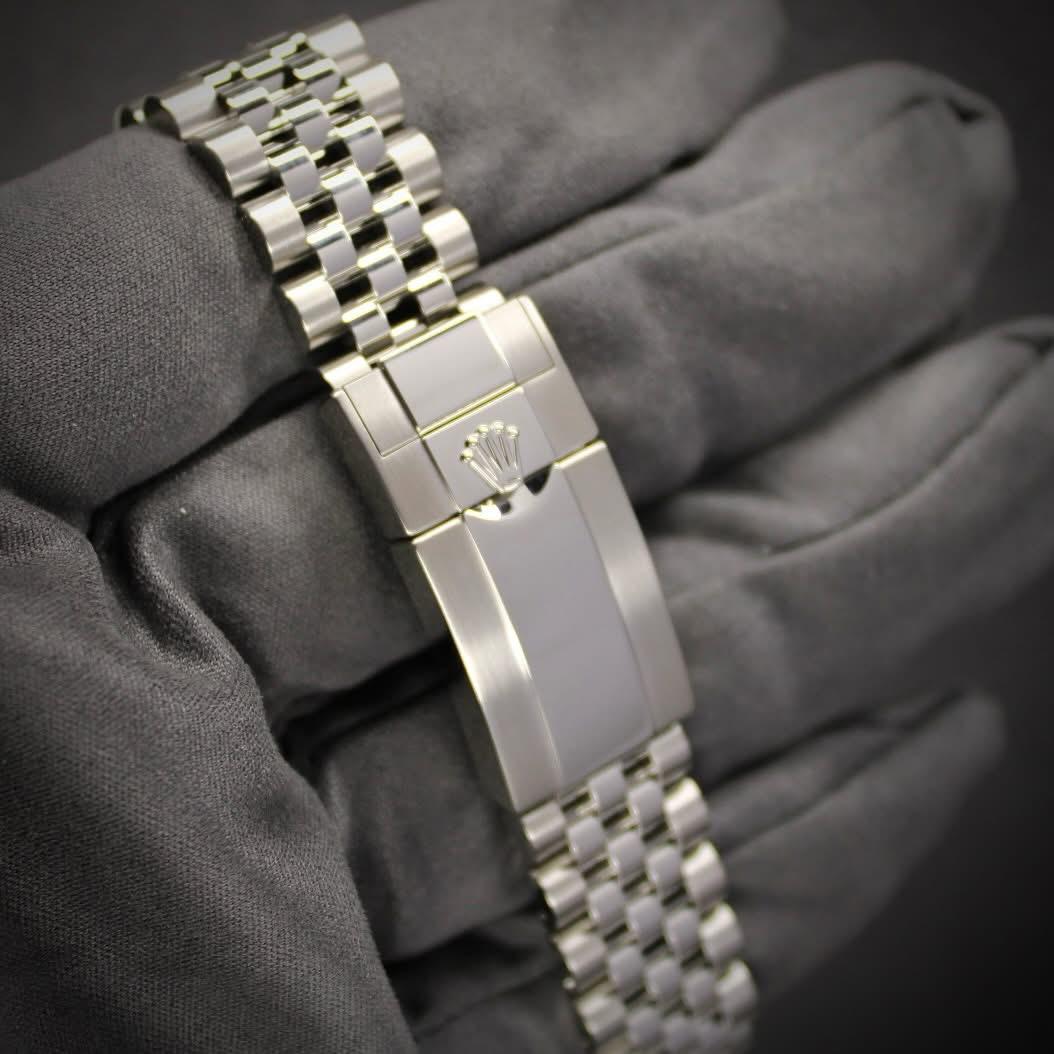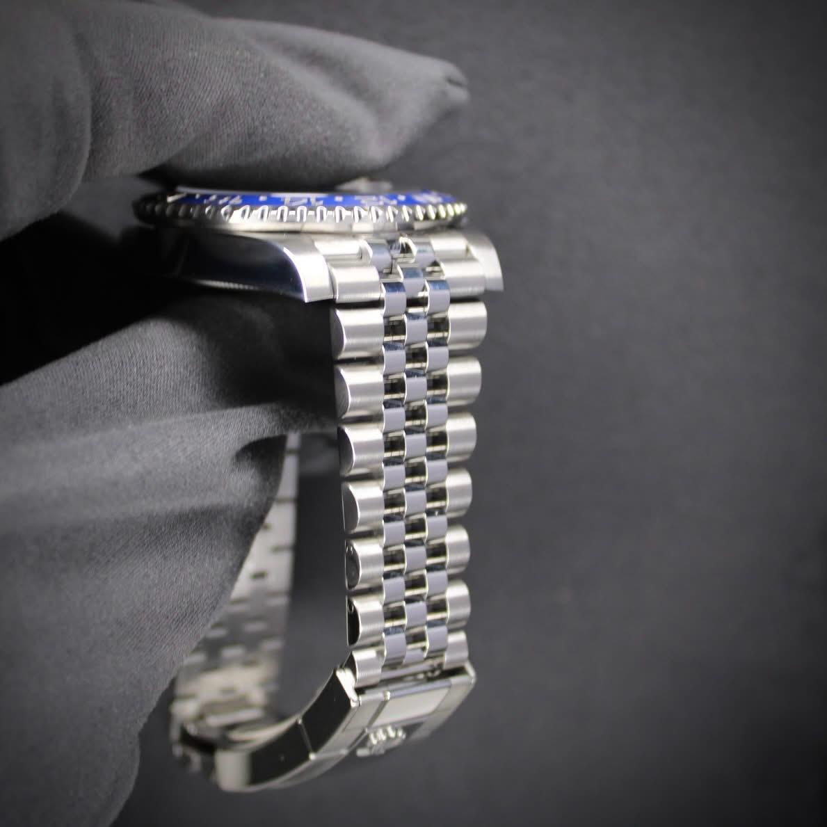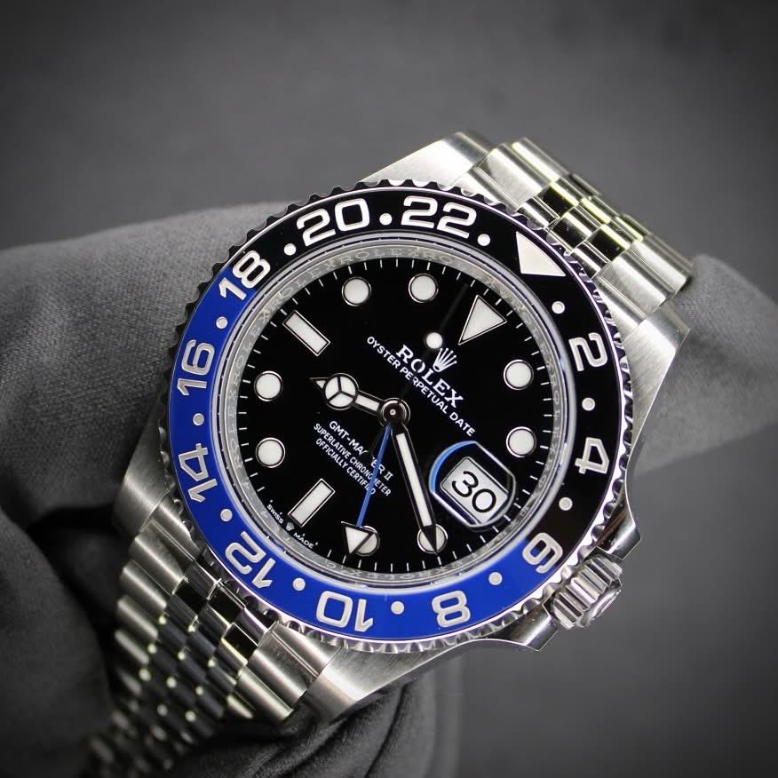 The Rolex GMT-Master II reference 126710BLNR on a Jubilee bracelet is a modern classic that combines robust functionality with refined style. Crafted from Oystersteel, it features the distinctive black and blue Cerachrom bezel, earning it the popular “Batman” nickname, and allowing easy tracking of multiple time zones. The crisp black dial maintains excellent legibility, while the five-link Jubilee bracelet adds comfort and a more elegant profile compared to the Oyster bracelet. Powered by Rolex’s cutting-edge automatic movement and built to Superlative Chronometer standards, this model represents the perfect balance of sport, precision, and everyday luxury from Rolex.